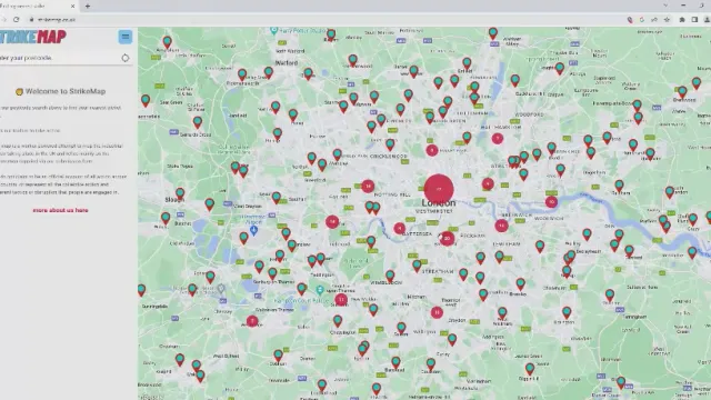 Приложение демонстрира в действително време какви са стачките към вас и оказва помощ на жителите на Острова да избегнат неприятните последствия от митингите. Ако въведете пощенския си код на адрес trikemap.co.uk можете да видите в действително време какъв брой и къде са стачките към вас.