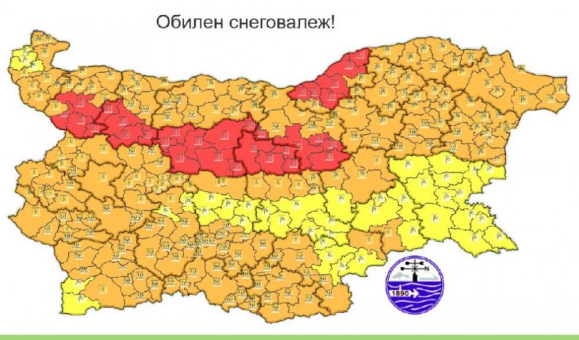 Валежите ще продължат, на доста места ще са обилни по количество. След обяд със застудяването в Западна и Централна България дъждът ще премине в сняг и ще започне да се образува снежна покрива, а по проходите ще има виелици и ще се образуват навявания.