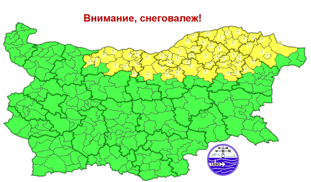 През идващото денонощие ще бъде облачно. В Североизточна България ще завали сняг, който денем ще обхване доста региони от Северна България. В Южна България преваляванията ще са от дъжд, оповестиха от Националния институт по метеорология и хидрология (НИМХ).