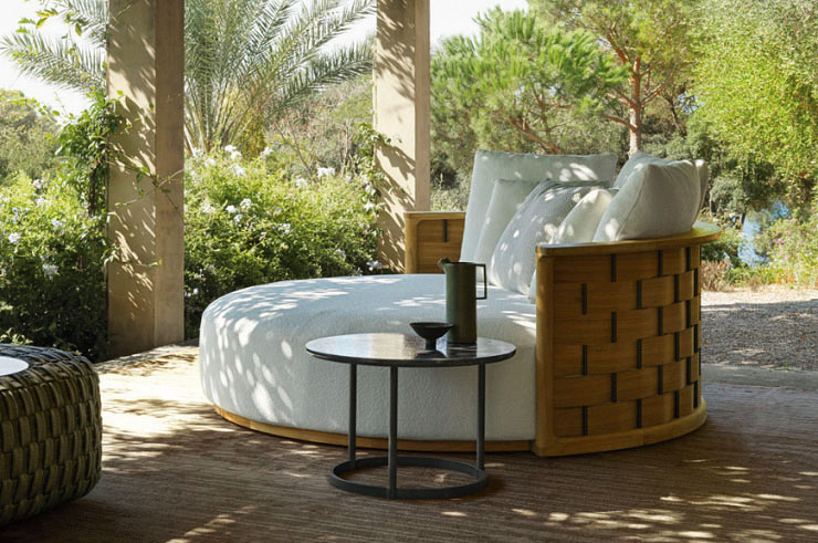 Луксозният бранд Minotti също излиза навън с сбирката си Sunray, в която изисканият дизайн и деликатно изследваният комфорт сплотяват старания, с цел да показват интимна релаксираща атмосфера.