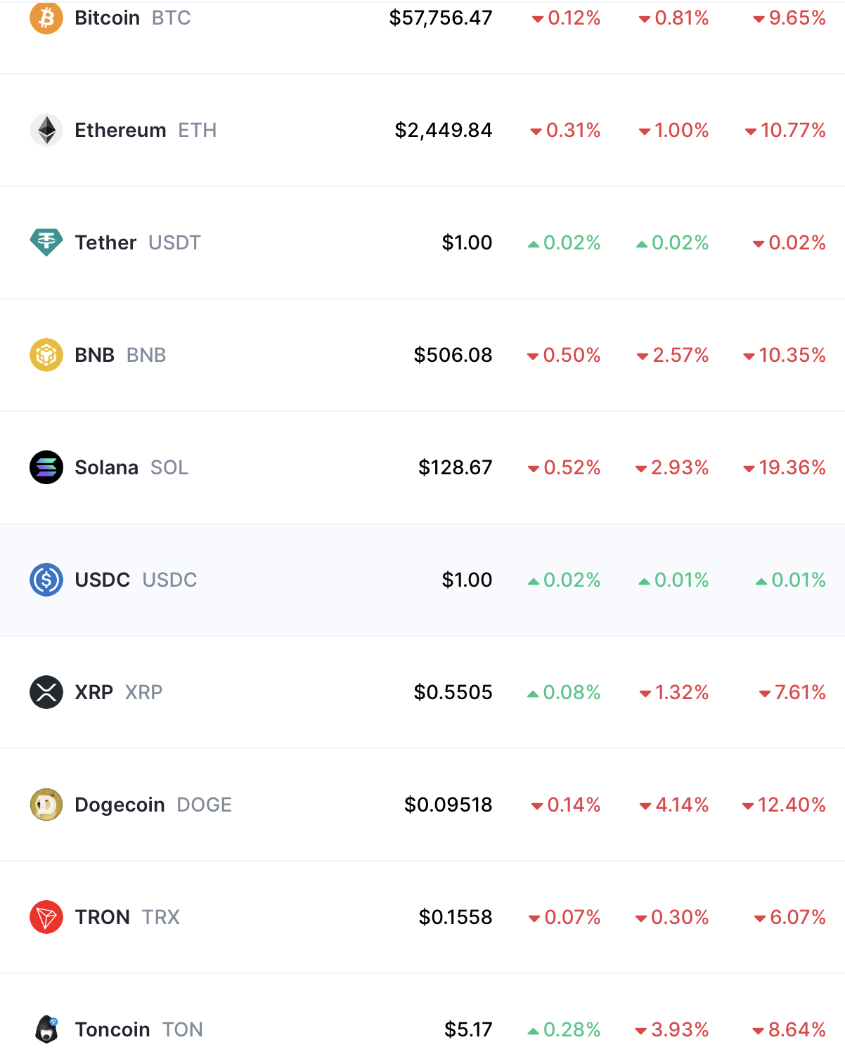 Други огромни криптовалути като BNB и Solana изгубиха сред 2.5% и 3% от цената си до момента в който при DOGE и TON загубите се равняват на съвсем 4%.