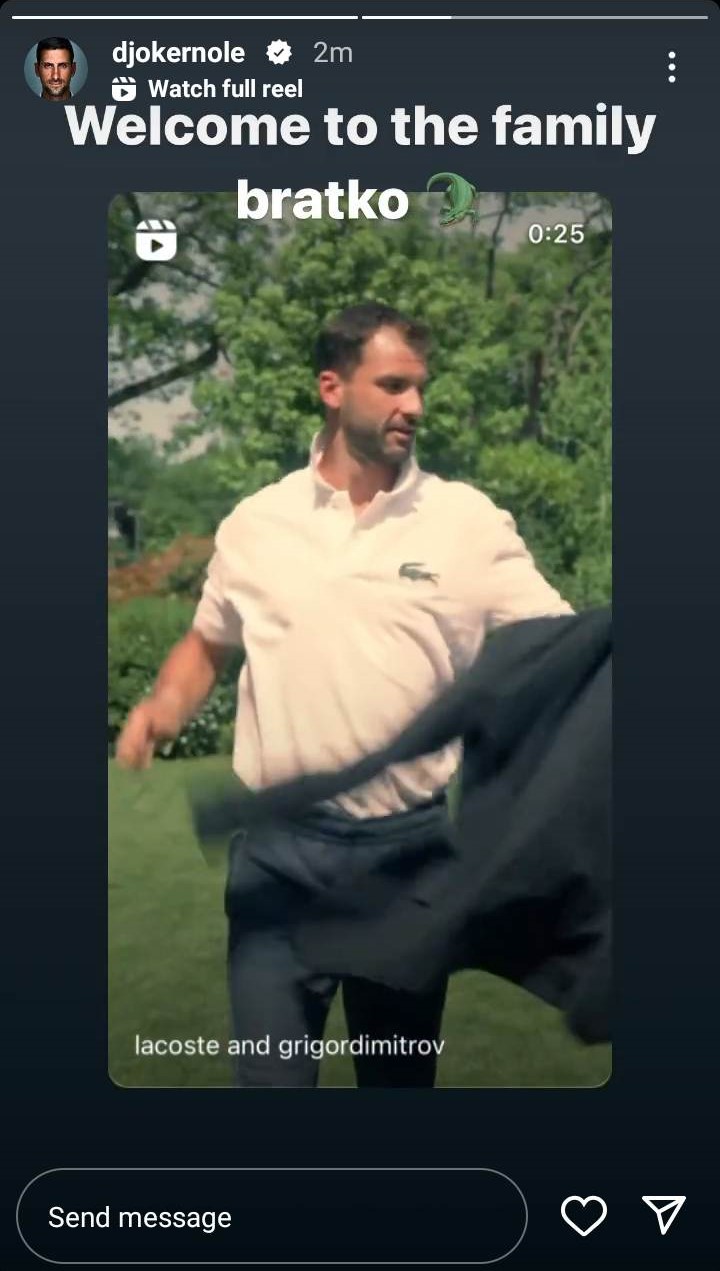 Именно Джокович бе първият, който приветства най-хубавия ни тенисист измежду посланиците на марката с малко обръщение в обществените мрежи. " Добре пристигнал в фамилията, братко ", написа 22-кратният първенец от Големия шлем, който нееднократно е засвидетелствал приятелското си отношение към първата ни ракета.