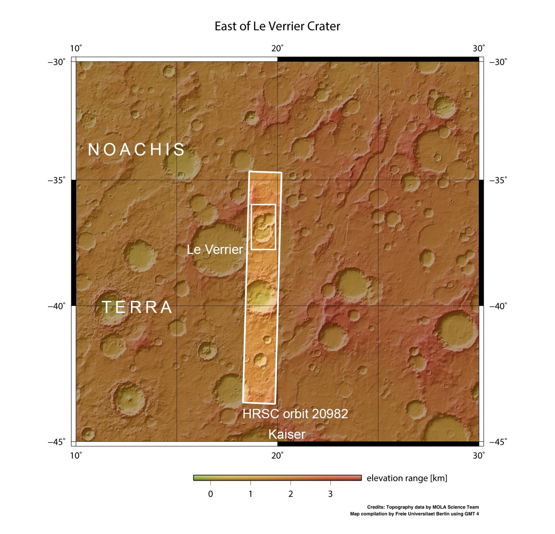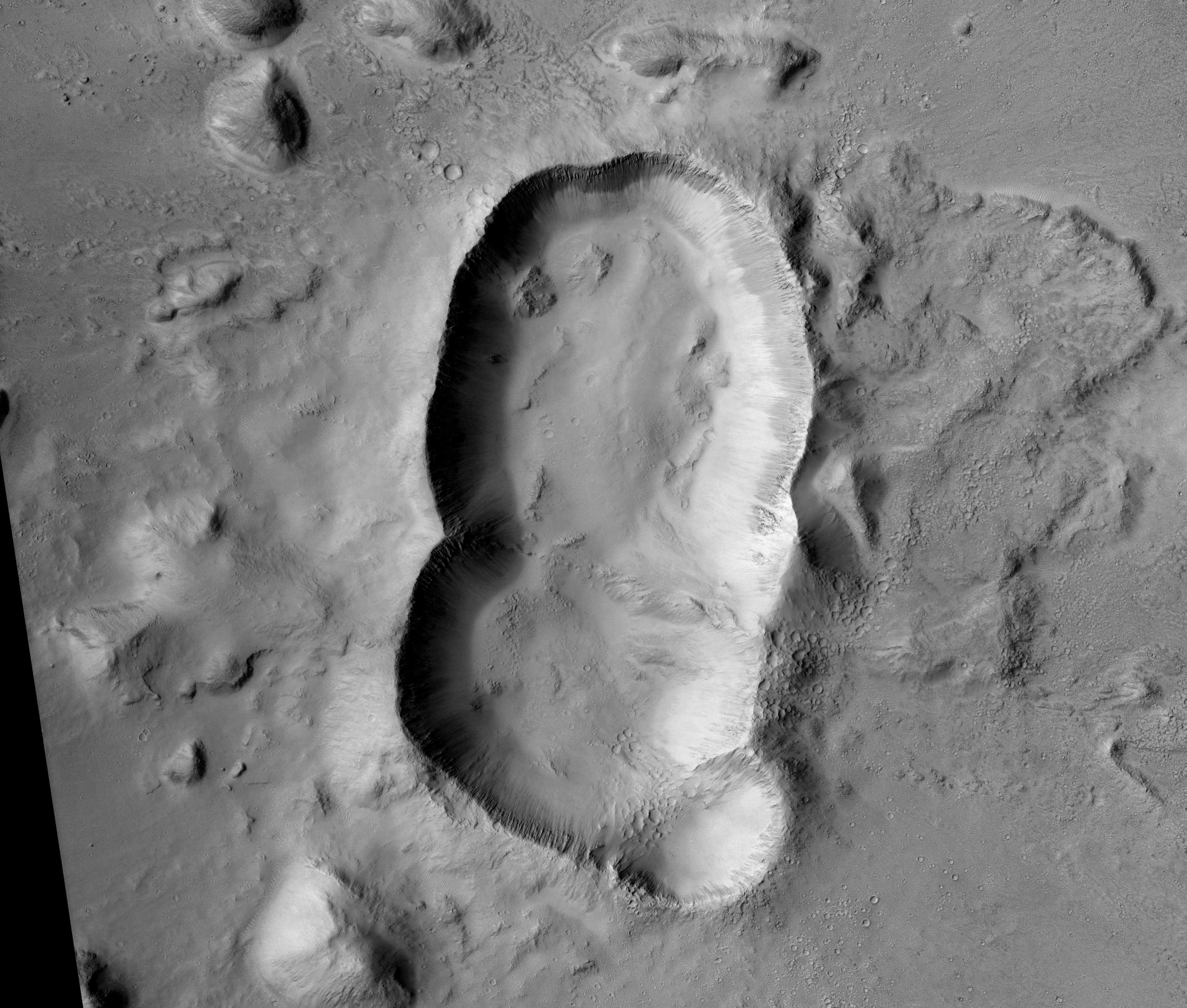 През 2017-а Mars Reconnaissance Orbiter видя удължена хлътналост, формирана от три слели се кратера. Според астрономите тя се е получила от три галактически обекта, летящи в близка групировка.
