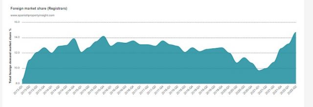През второто тримесечие на 2022 година в испанския аграрен указател са вписани 24 029 покупко-продажби за продажба на жилища с присъединяване на задгранични купувачи, което е със 76% повече в съпоставяне със същия интервал на предходната година.
