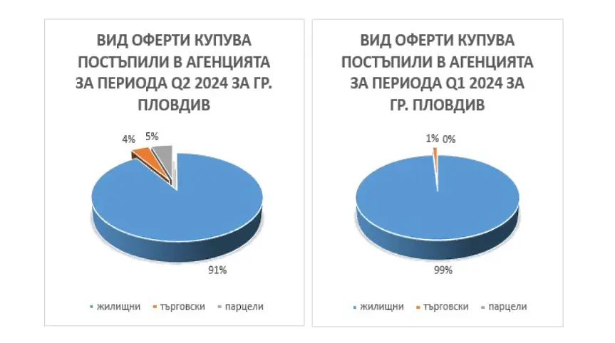 През второто тримесечие на годината не се виждат обилни разлики при пазара на недвижими парцели в Пловдив. Жилищата, към които демонстрират интерес купувачите, са най-вече двустайни и тристайни жилища. Повечето от покупко-продажбите се случват благодарение на банково кредитиране. По данни на Arco Real Estate не се отбелязва доста висок растеж в търсенето, само че няма и смяна или спад в цените на парцелите. В града под тепетата от известно време се следи една нова наклонност – по-голямо повишаване на новото строителство. Отчита се растеж при търсенето на имоти спрямо предходното тримесечие на годината. Относно търсенето и предлагането на къщи, селата към Пловдив не престават да стават все по-актуални измежду търсещите сходни парцели. Повечето от тези села са сносно уредени - разполагат с канализация, както и детски градини и учебни заведения, а близостта до града също е огромно улеснение за работещите там.