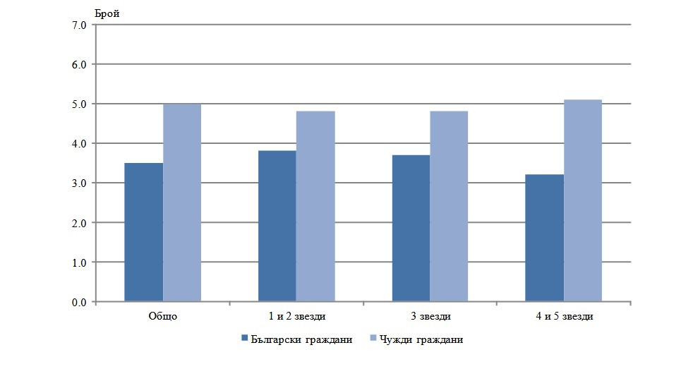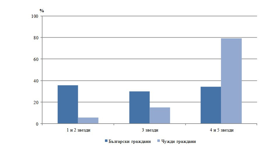 Хотелите с 4 и 5 звезди са желани от 38.2% от българските жители, като междинният брой осъществени нощувки в тях е 3.2.