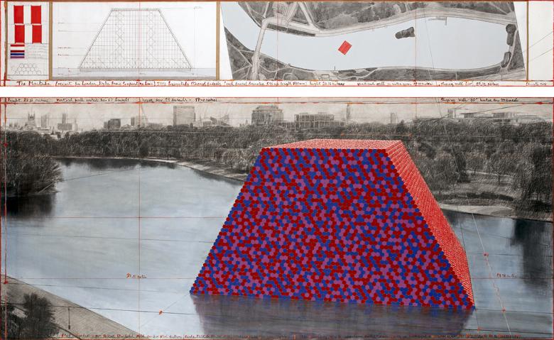 Новата статуя в Лондон представлява мастаба. Това е много антична форма, която се е срещала в Месопотамия по времето, когато хората са почнали да се урбанизират. Първите домове в Месопотамия са имали начело пейки с такава форма, а по-късно тя се асоциира с гробниците на фараоните. Представлява трапецоидна призма, стените са с надолнище 60 градуса. " Мастаба " в Лондон ще е висока 20 метра, широка – 30 и дълга – 40. Варелите от горната страна и две от стените ще са червени и бели, до момента в който последните варели, забележими върху двете отвесни стени, ще бъдат червени, сини и лилави.