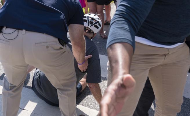 Джо Байдън падна, докато слизаше от велосипеда си след разхода по плажа