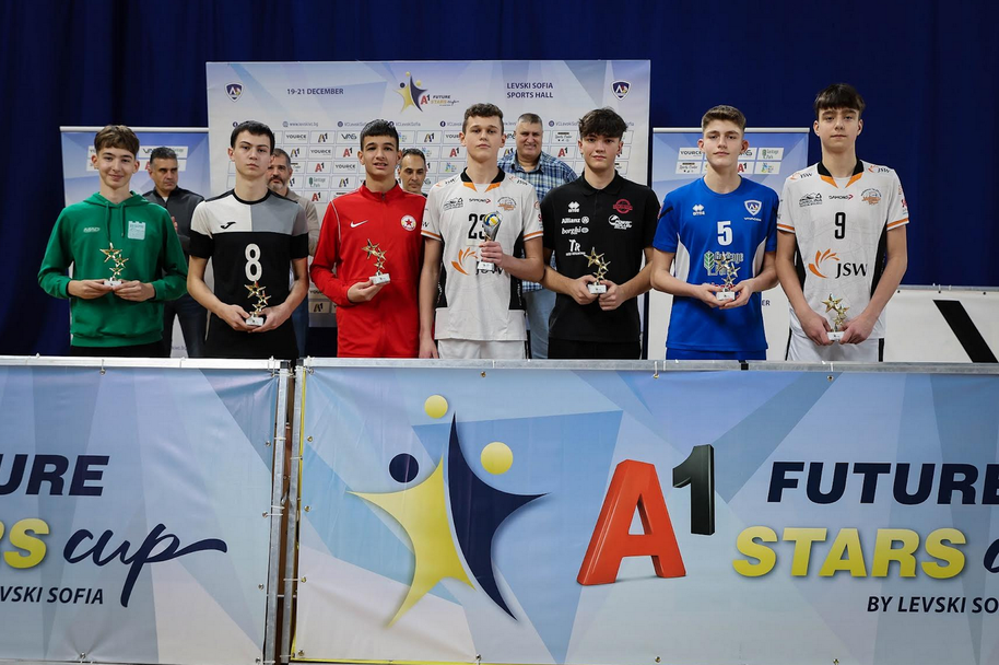 Президентът на Българската федерация по волейбол Любомир Ганев връчи купите на първенците в петото издание на силния интернационален волейболен шампионат " А1 Звезди на бъдещето ", провеждащ се в спортна зала " Левски София ". Италианският Бусто Арсицио при девойките и полският Ястжембски Венгел при момчетата станаха номер 1 за 2025.