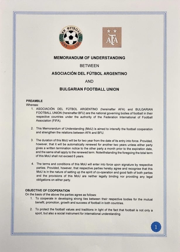 " За мен е изключителна горделивост да разглася, че Българският футболен съюз получи покана от Аржентинската футболна асоциация (АФА) за взаимни начинания и разнообразни стратегии за развиване на футбола на всички равнища ", написа Михайлов.
