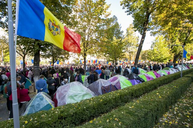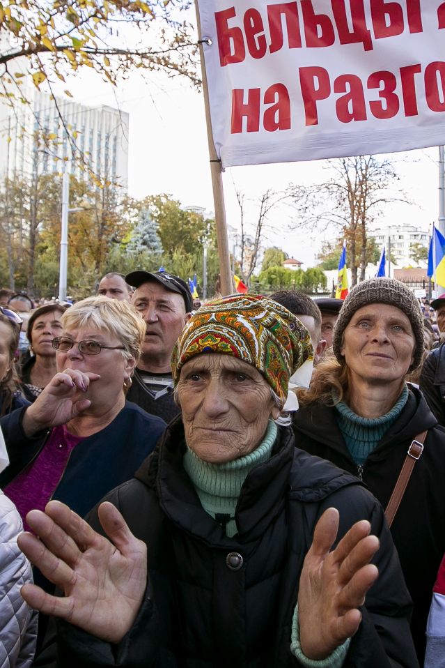 На 2 октомври 40 000 души се събраха пред постройката на президентската администрация, където от 18 септември участниците в митинга разпънаха палатков град. Протестиращите скандират " Долу Мая Санду! ", " Оставка! ", както и антиправителствени лозунги. Хората в палатковия град се оплакват от ниски заплати, помощи и пенсии. Уплашени са и от внезапното повишаване на храните и комуналните услуги.
