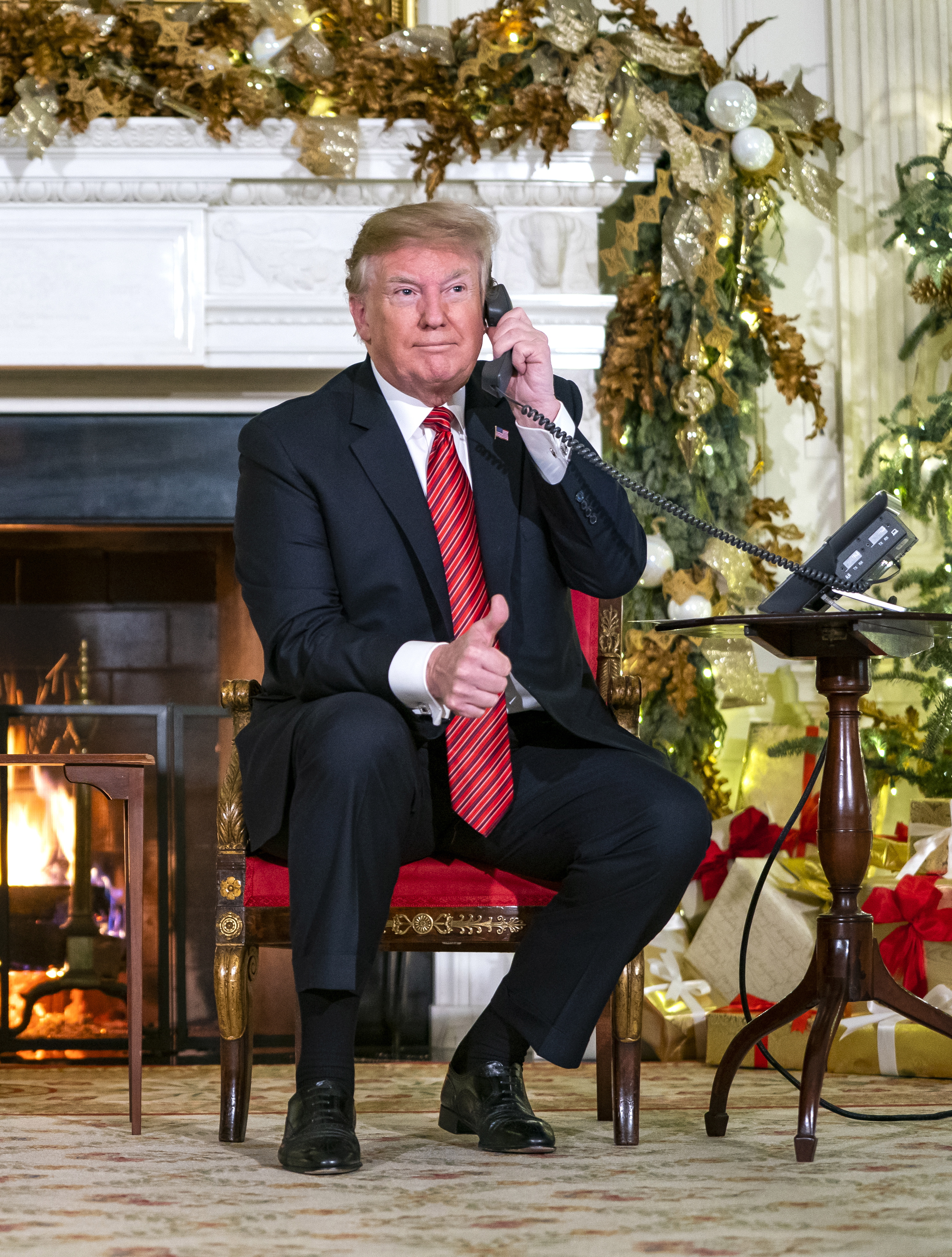 Президентската двойка беседва по телефона с няколко души, които пожелаха да научат къде тъкмо се намира положителният дъртак, раздаващ дарове. Тръмп разпита момченце на име Колман по какъв начин се показва в учебно заведение, какви са оценките му и на какъв брой години е, а след това го попита дали има вяра в Дядо Коледа, написа Блиц.