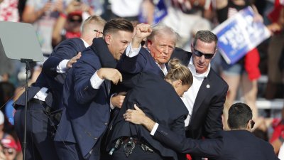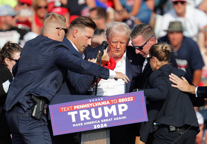 Агентът на Сикрет сървис се появява до него на серия от фотоси, показващи по какъв начин Тръмп се изправя на крайници и се вижда кръвта, която се стича по лицето му, и по какъв начин той подвига пестник, предизвиквайки радостни възгласи измежду присъстващите на митинга.