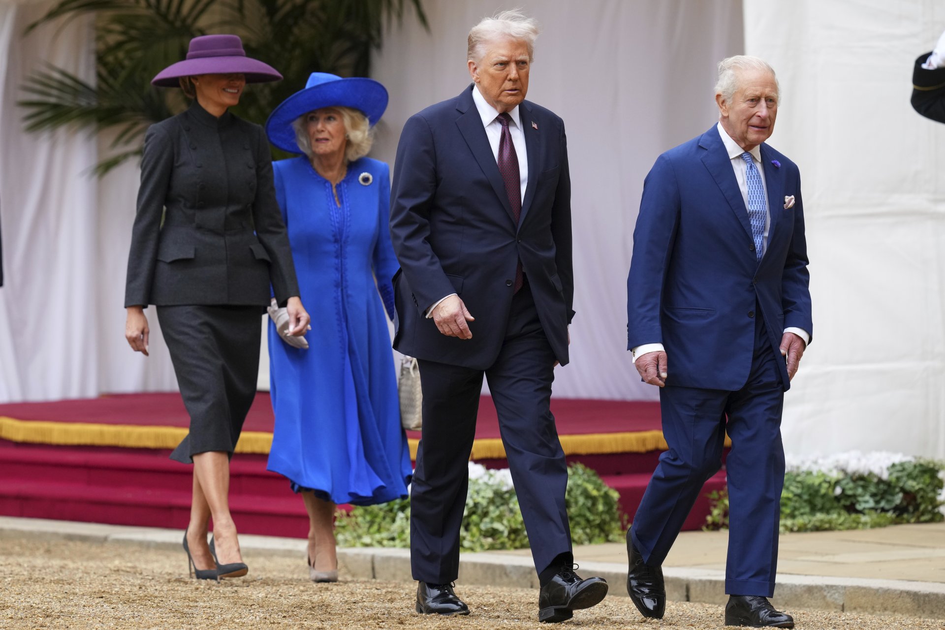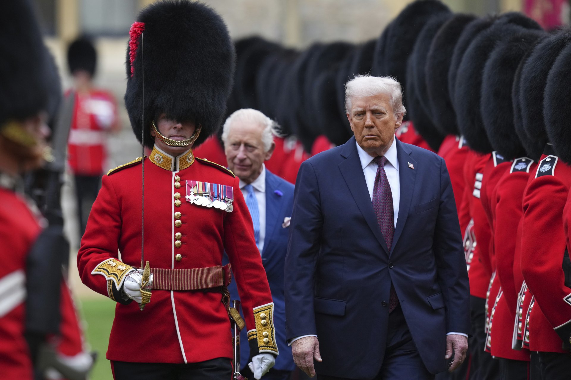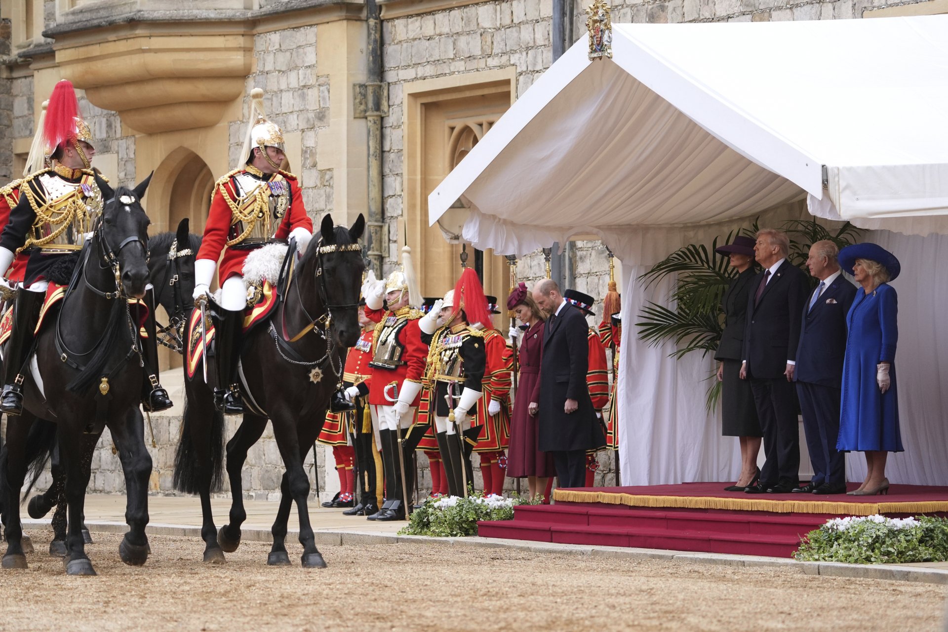 Президентът на Съединени американски щати Доналд Тръмп се наслаждения на английски кралски театър, посрещнат от почетна армия и кралски кавалеристи в алено и златно като посетител на крал Чарлз Трети в замъка " Уиндзор " за началото на държавно посещаване във Англия, изпълнено с невиждана пищност и политически опасности за страната хазаин, съобщи Асошиейтед прес.
