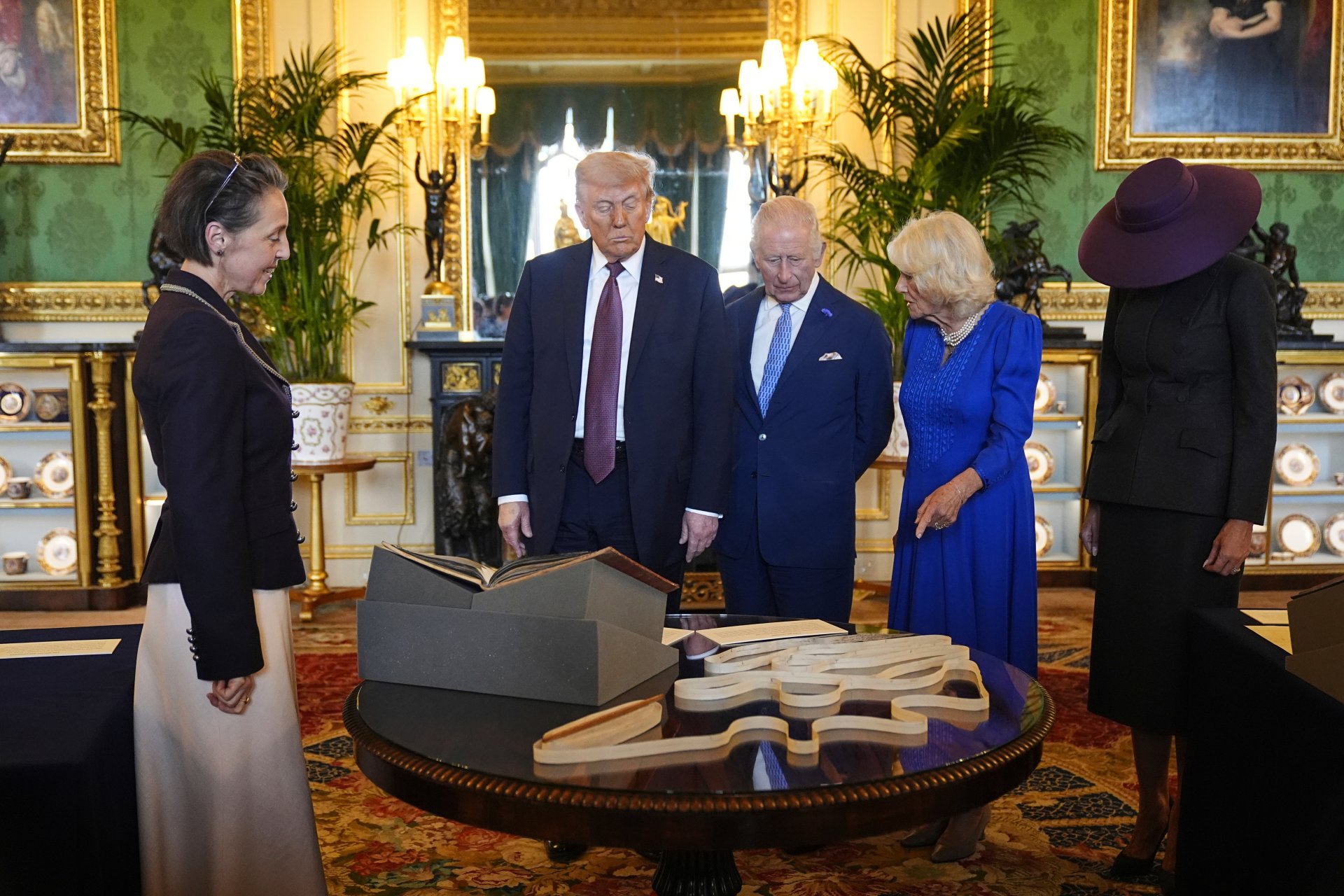 По-късно Тръмп и Чарлз разгледаха изложбата на Кралската сбирка в богато украсена зала, където чиновниците бяха подредили пет маси с артефакти, свързани с връзките сред Съединени американски щати и Англия.