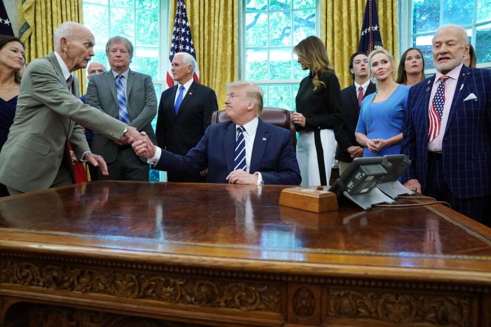 Президентът на Съединени американски щати Доналд Тръмп се срещна в Овалния кабинет на Белия дом с двамата към момента живи астронавти от историческата галактическа задача " Аполо 11 ", която преди 50 години води човек на Луната, съобщи Агенция Франс Прес.