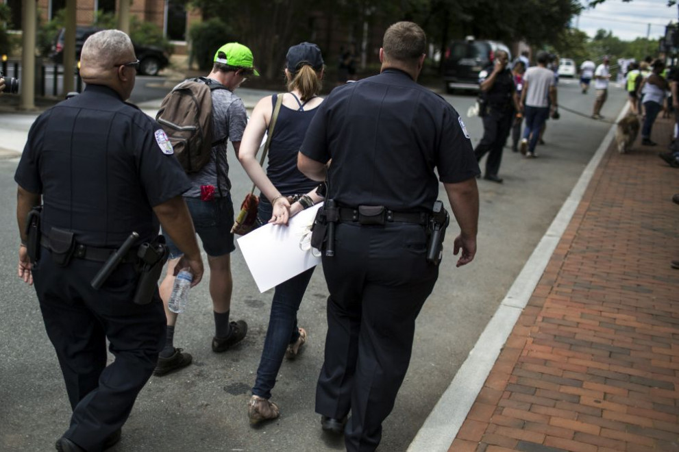 Белите националисти се бяха събрали в града, с цел да изразят възмущението си от проектите на управляващите да демонтират скулптура на генерала от Конфедерацията Робърт Лий. В отговор се събраха контрапротестиращи. След няколко часа конфликти и принуждение сред двете групи кола се вряза в група мирни протестиращи. Шофьорът е арестуван. Лидерът на така наречен " Алтернативна десница " Ричард Спенсър и някогашният член на Ку Клукс Клан Дейвид Дюк участваха в демонстрацията в града. Дюк съобщи пред кореспонденти, че белите националисти работят, с цел да " изпълнят обещанията на Доналд Тръмп ".
