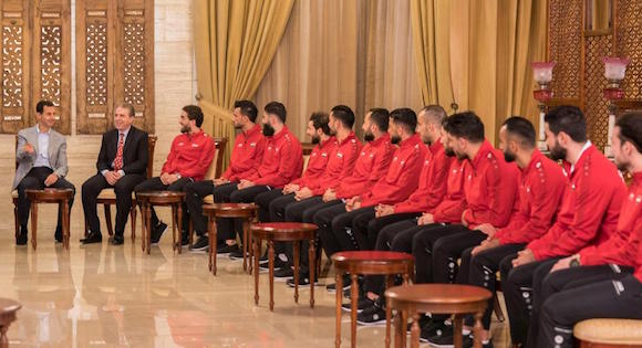 Президентът на Сирия Башар Асад посрещна в двореца си в Дамаск националния тим по футбол, на който малко не му доближи да се класира за Мондиал 2018. Тимът бе на крачка от финалния плейоф на международните квалификации, само че загуба с 1:2 против Австралия във втория мач сред двата тима го лиши от фантазията за първо присъединяване на международното.