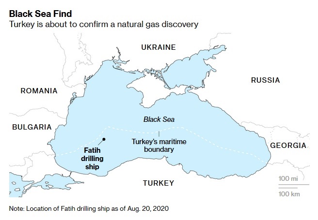 Президентът Реджеп Тайип Ердоган заяви в петък, че Турция е разкрила своето най-голямо до момента находище на природен газ – 320 милиарда кубични метра, в Черно море и се надява добивът му да стартира през 2023 година, предадоха международните организации.