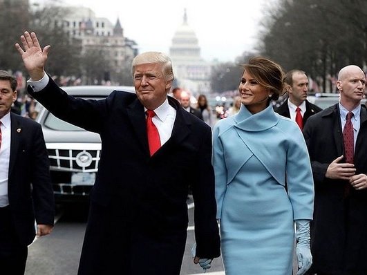 Мелания се беше изтупала в същата дреха по време на церемонията по инагурация на Доналд Тръмп през януари 2017 година Моделът на госпожа Тръмп бе дело на " Ралф Лорън ", в стила на 60-е години, и води към друга емблематична дама - Джаки Кенеди.