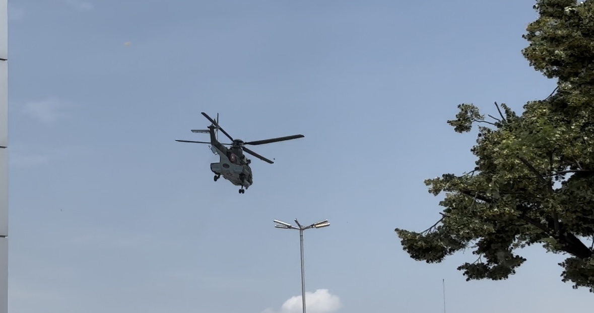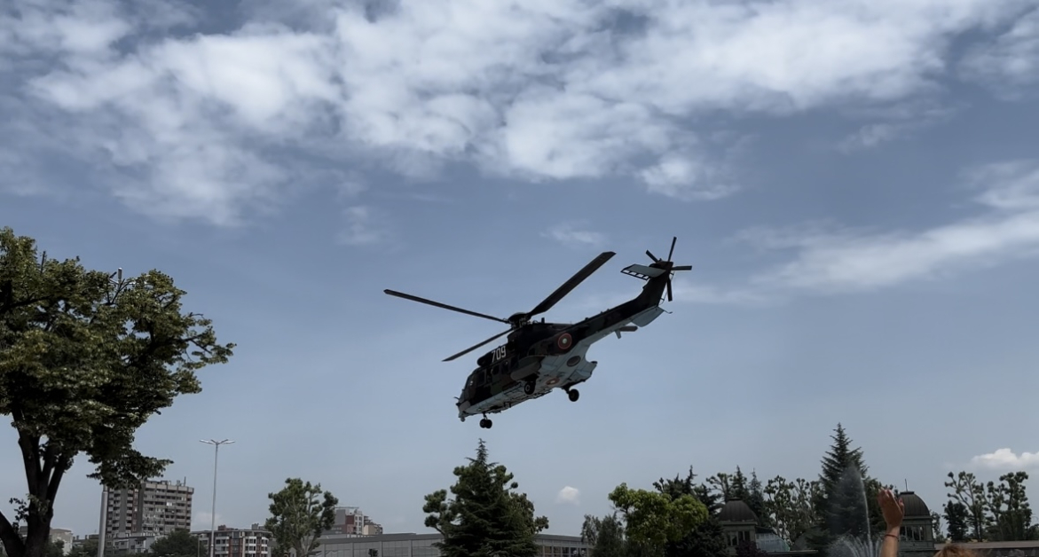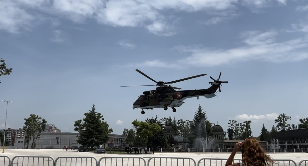 Президентът Румен Радев излетя с хеликоптер от панаира в Пловдив, незабавно след откриването на " Хемус 24 " - интернационалното ревю за отбранителна техника.