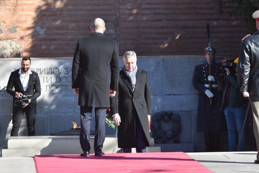 Президентът Румен Радев посрещна на пл. „ Св. Александър Невски “ в София президента на Черна гора Мило Джуканович, който е на публично посещаване у нас по покана на Радев.