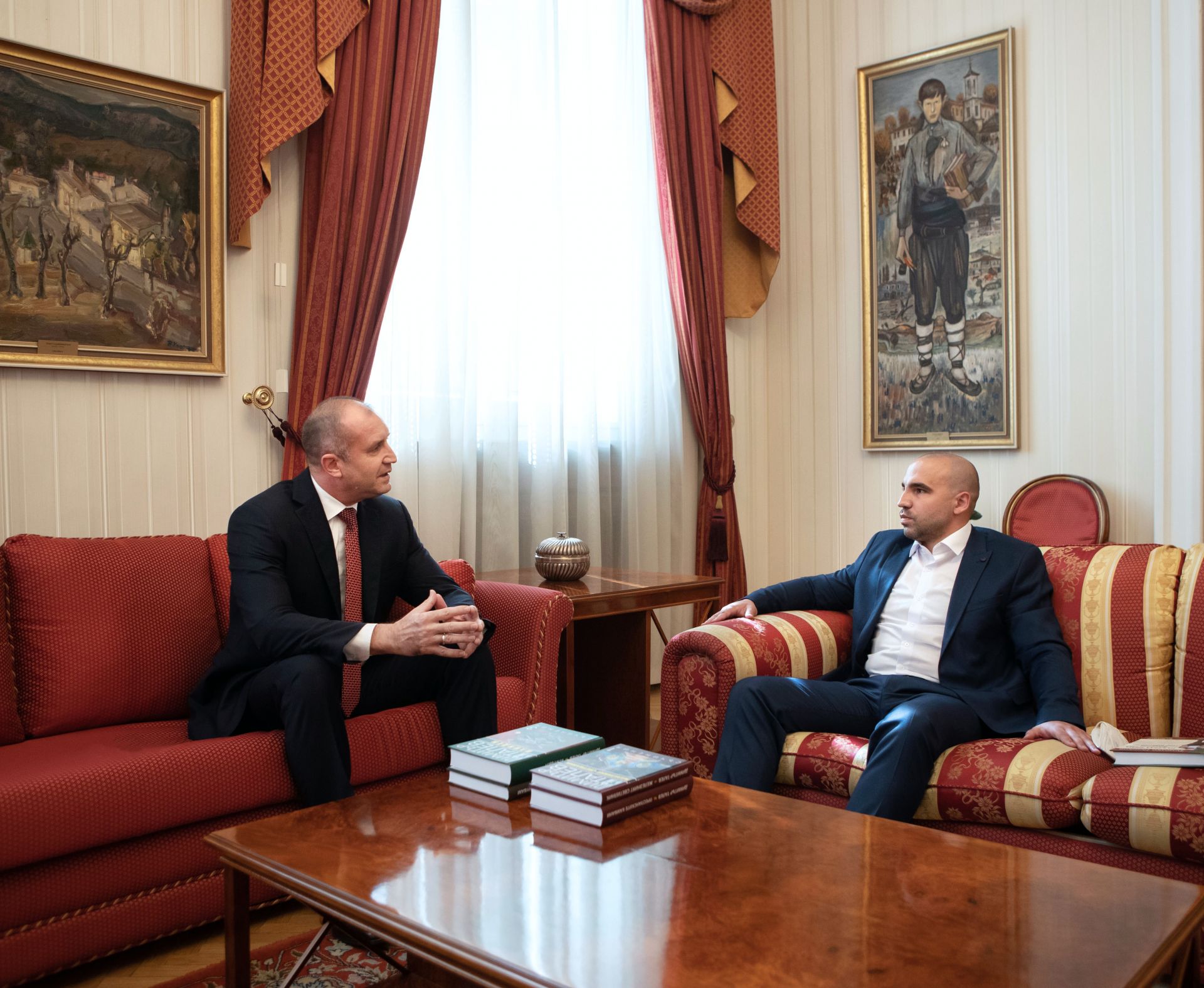 Президентът Румен Радев се срещна със основателя на гражданската самодейност " Изпрати българска книга в Македония " Виктор Стоянов, който беше спрян от митничари на границата с Република Северна Македония (РСМ) с над 900 български книги за подаяние.