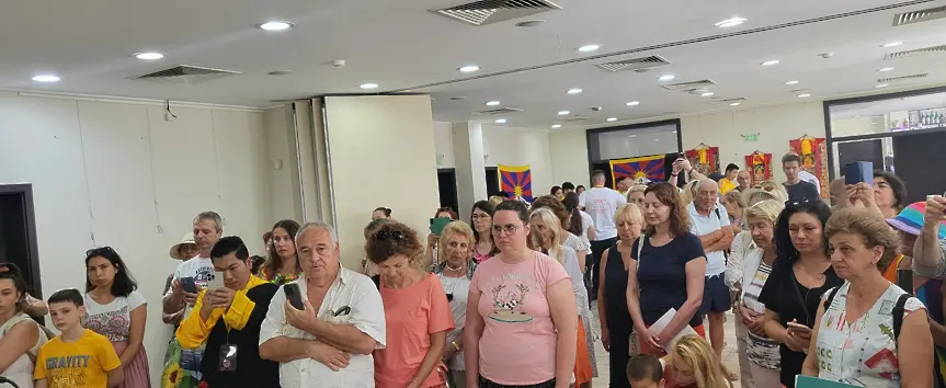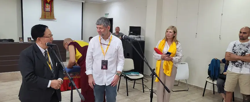 " Благодаря за гостоприемството на Община Бургас, на кмета и зам.-кметицата, на уредниците, на всички вас, които сте тук. Това е добър избор от ваша страна. Днес е рожденият ден на Далай Лама и ние избрахме да честваме тук. Виждам какъв брой топли хора сте вие, тъй като по тези усмивки си проличава сърцето на индивида. Много сме щастливи и усещаме страната, като свои дом ", това сподели в приветствието си Лобсанг Фънтсок, ръководител на Фондацията за Хималайска просвета.