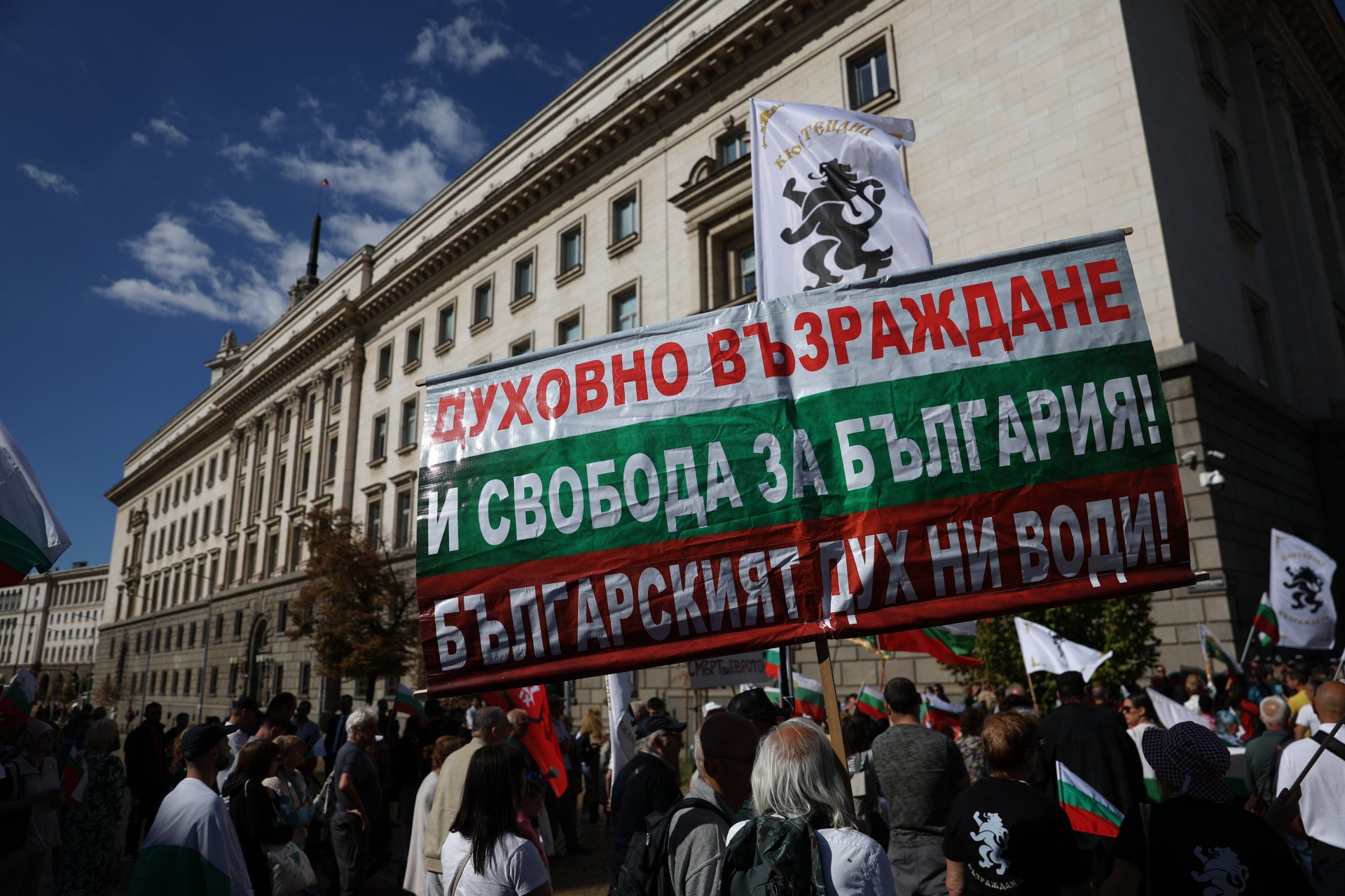 Протестиращите носят български и съветски флагове, както и плакати с послания като: " Оставка, съд и затвор против ГЕРБ, Българска социалистическа партия, Движение за права и свободи, Политическа партия, Демократична България, Има Такъв Народ! " и " Бъдещето е на суверенните страни ". Гражданите скандират: " Оставка ".