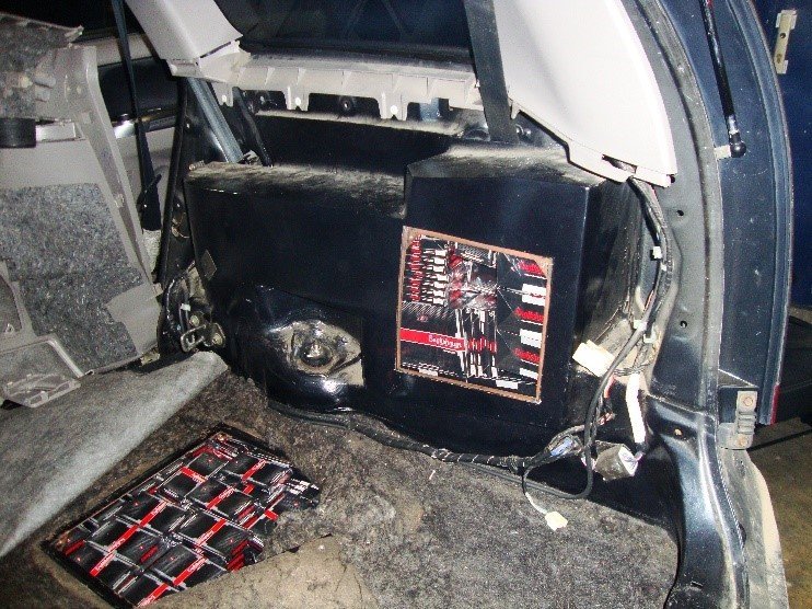 При щателната митническа инспекция е открито, че посредством в допълнение обособена ламарина е построен двоен под. Тайникът е бил разграничен на разнообразни нефабрични кухини, покрити с капаци за достъп.