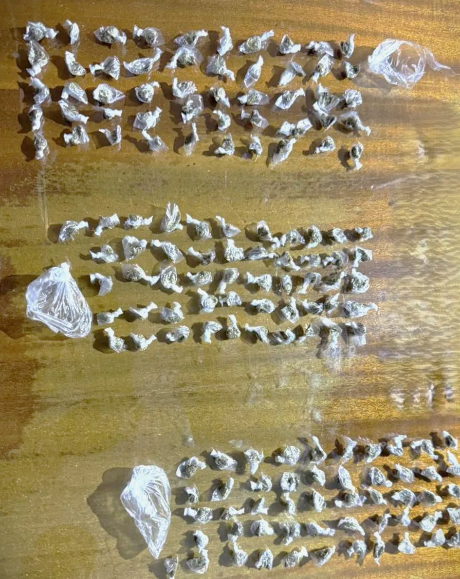 При претърсването са открити и конфискувани 182 пакетчета суха тревиста маса и сходна разфасовка с кафяво прахообразно вещество. Експертна информация открила, че конфискуваните вещества са синтетичен канабиноид с общо тегло близо 15 грама и 0,136 грама фентанил.