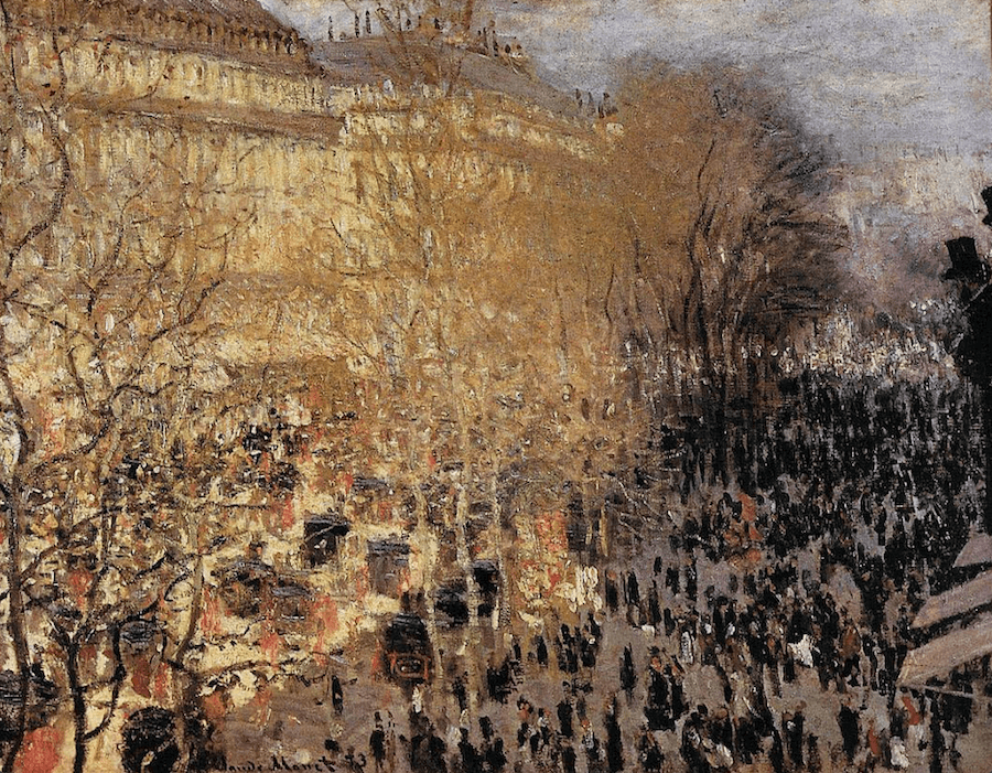(The Boulevard des Capuchine,1873, by Claude Monet)