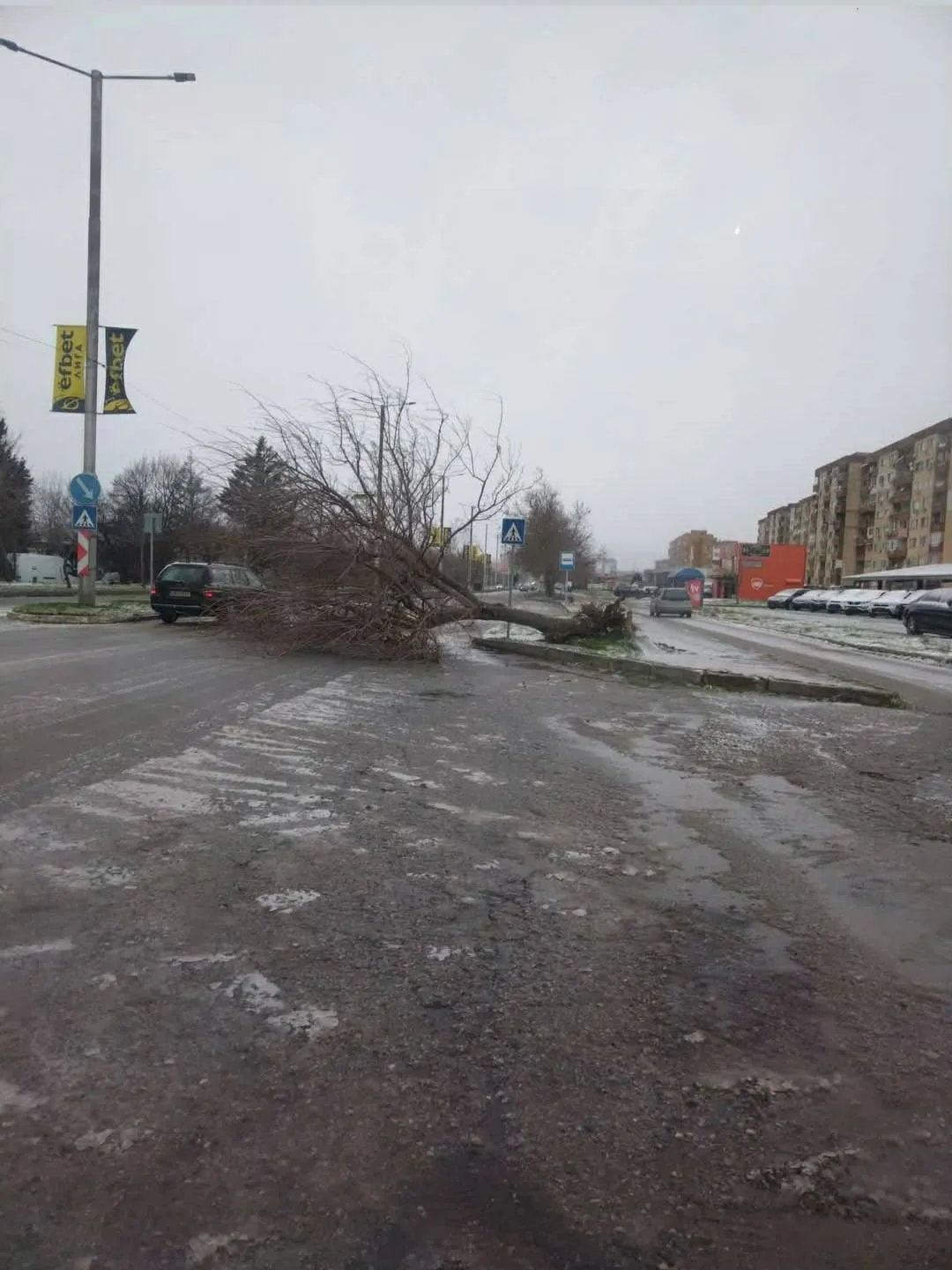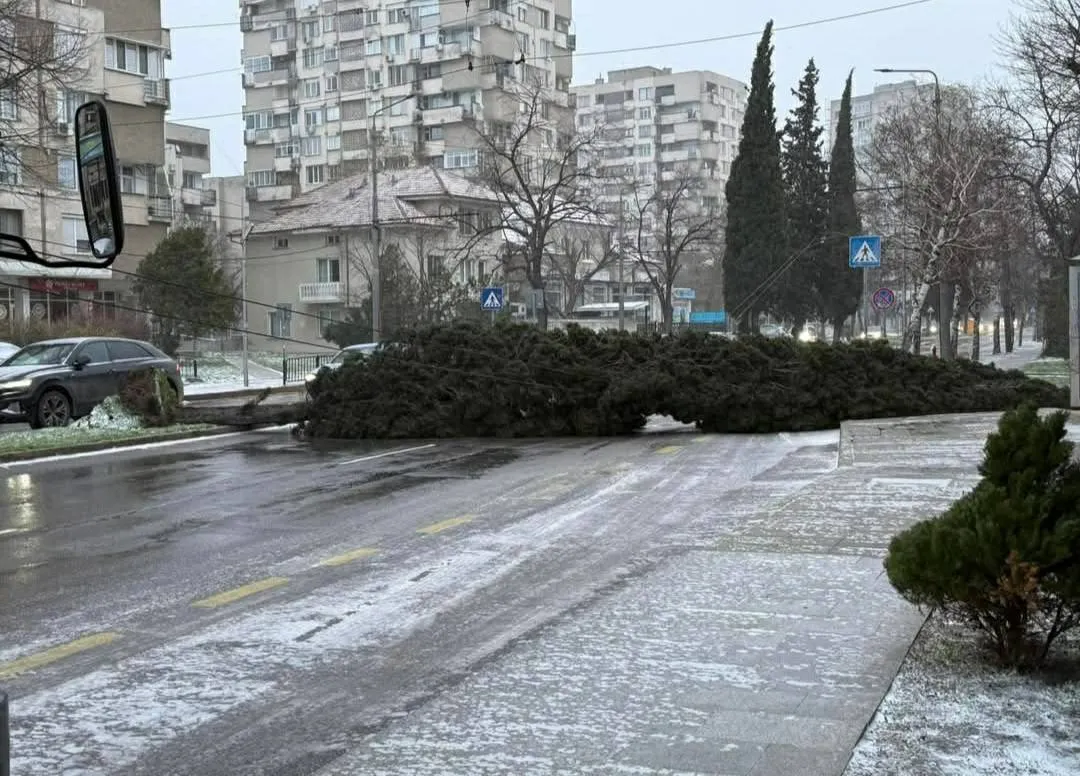 Паднали дървета, изкоренени до основи. Стволове, преграждащи булеварди. Огънати ламарини, разпръснат строителен материал, разкъртени гаражи. Метални структури, стиропор, клони и парчета – всичко е размесено в една картина, която наподобява повече на кадър от катастрофален репортаж, в сравнение с елементарен зимен ден в български град.