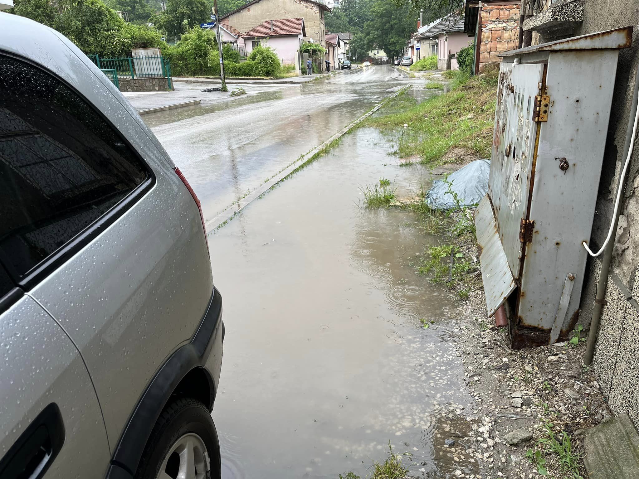 Мъжът е споделил и фотоси, които демонстрират наводнената улица. На фотосите не се вижда да има шахти, предназанчени за отводняване.