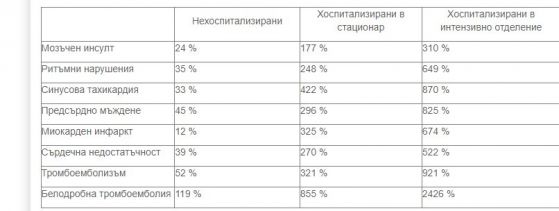 Резултатите от изследването са красноречиви: събитието, че пациентите са претърпели COVID-19, даже формата да е била извънредно лека и изкарана на крайник, се явява рисков фактор за редица следващи сърдечносъдови и мозъчносъдови болести.