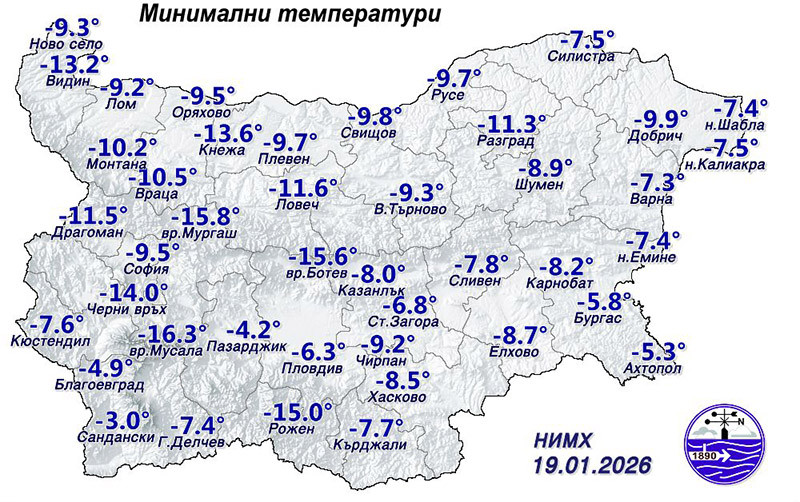 Той посочи, че през вчерашния ден минималните температури в страната доближиха до минус 14 градуса, като най-ниска е била в Разград – минус 13 градуса.