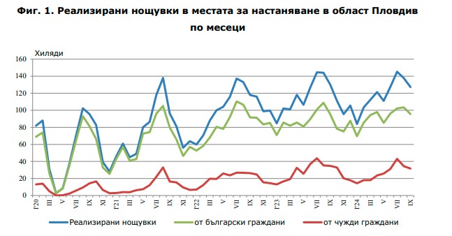 Приходите от нощувки за месец септември в Пловдив са близо 10 млн. лв.. Това излиза наяве от оповестените данни в Националния статистически институт. По-голям % от тях - 7.2 млн. са от български жители, а от непознати приходите възлизат на 2.7 млн. лв..