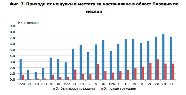 Близо 10 млн. лева приходи от нощувки за един месец в Пловдив
