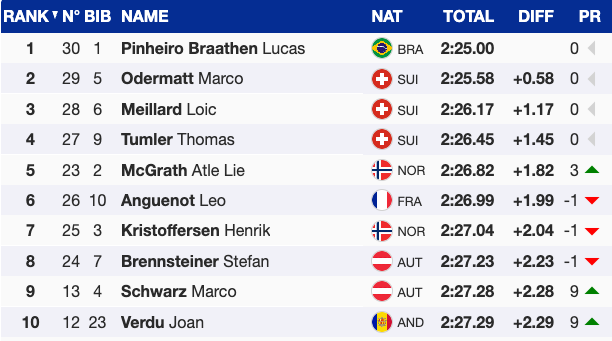 Томас Тумлер, различен швейцарец, остана на 4-та позиция, а топ 10 допълниха Атле Лие Макграт, Лео Онгено, Хенрик Кристофершен, Щефан Бренщайнер, Марко Шварц и Жоан Верду.