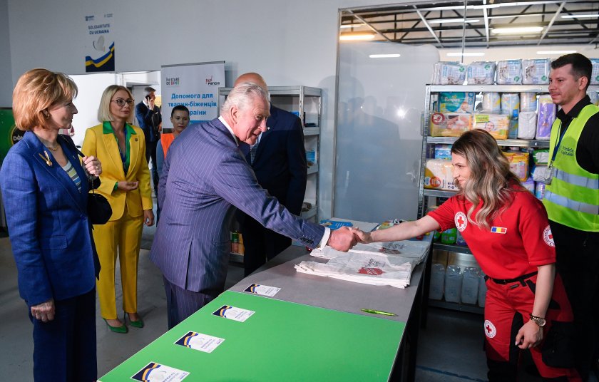 Британският престолонаследник посети конгресен център наоколо до Букурещ, в който са настанени стотици бежанци от войната в Украйна. Центърът е употребен за разпределителна точка и за храна, облекла и юридическа помощ за бежанците.