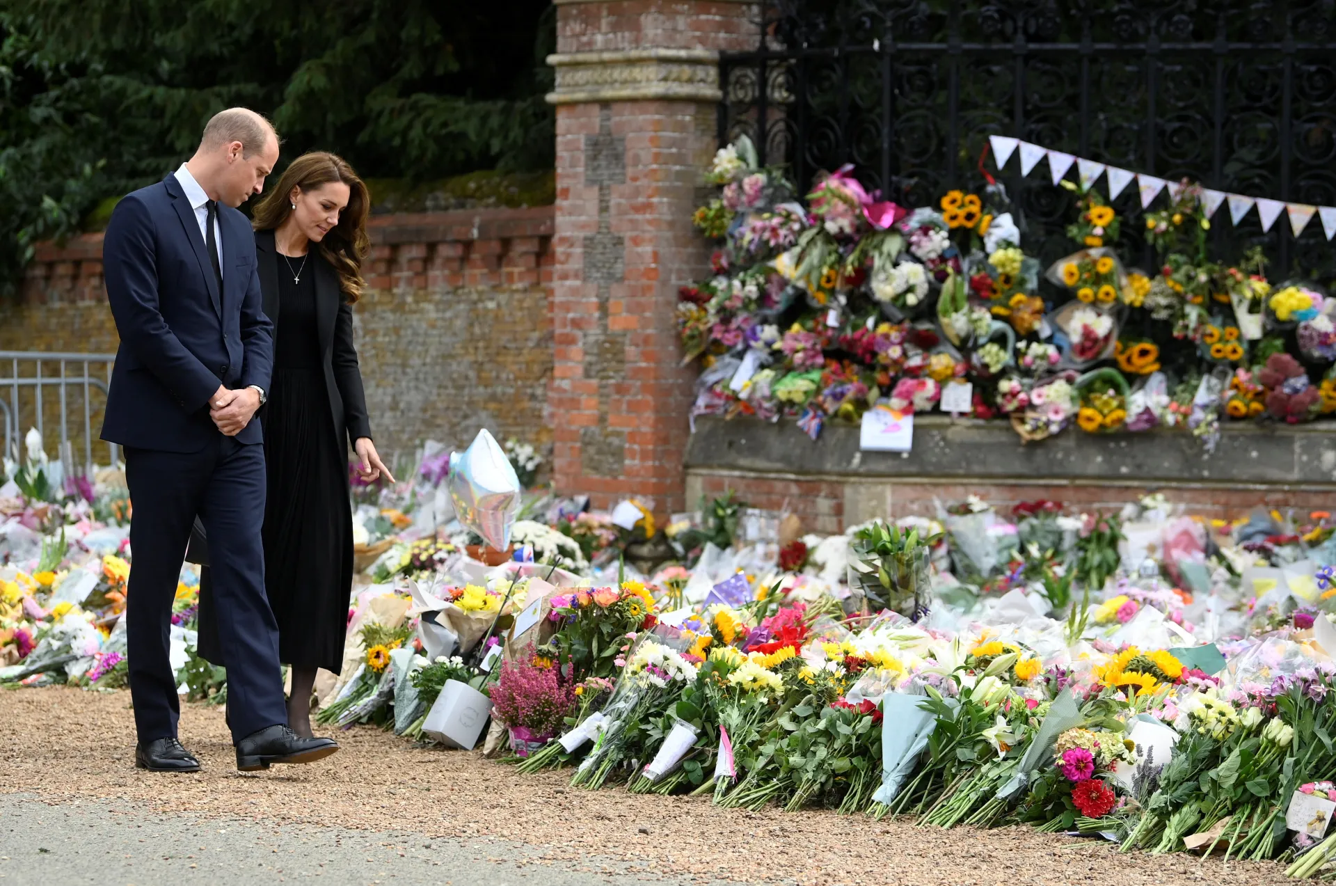 Принцът на Уелс Уилям и брачната половинка му принцесата на Уелс Катрин се разходиха около стената с хиляди цветя и бележки, оставени от жители в памет на починалата кралица Елизабет II в Сандрингам, написа Би Би Си.