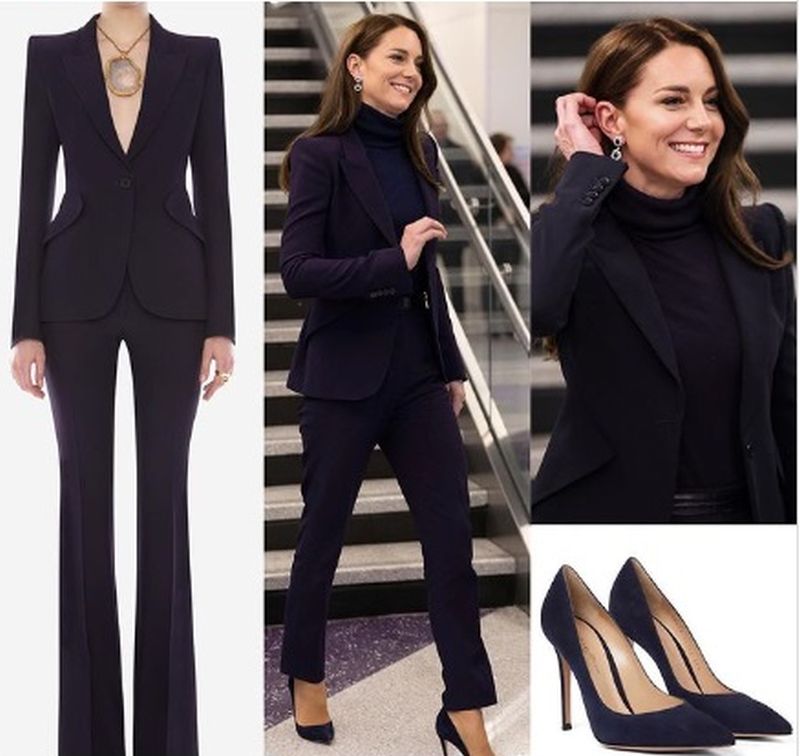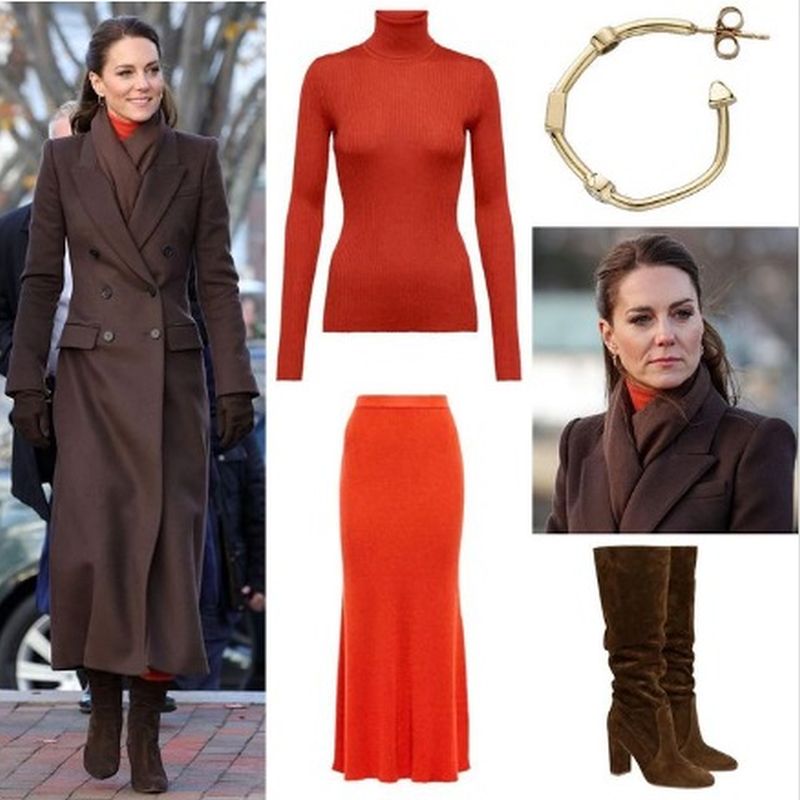 В четвъртък, 1 декември, принцът и принцесата на Уелс се срещнаха с основния изпълнителен шеф на Greentown Labs и президента на Североизточния съвет за чиста сила и Кейт избра визията за 11 260 $. Тя носеше кафяви панталони с висока талия, които костват 927 $, и подобаващ блейзър, направен от Roland Mouret. Точната цена на сакото е незнайна, само че сходни якета на Roland Mouret се продават за $1986.