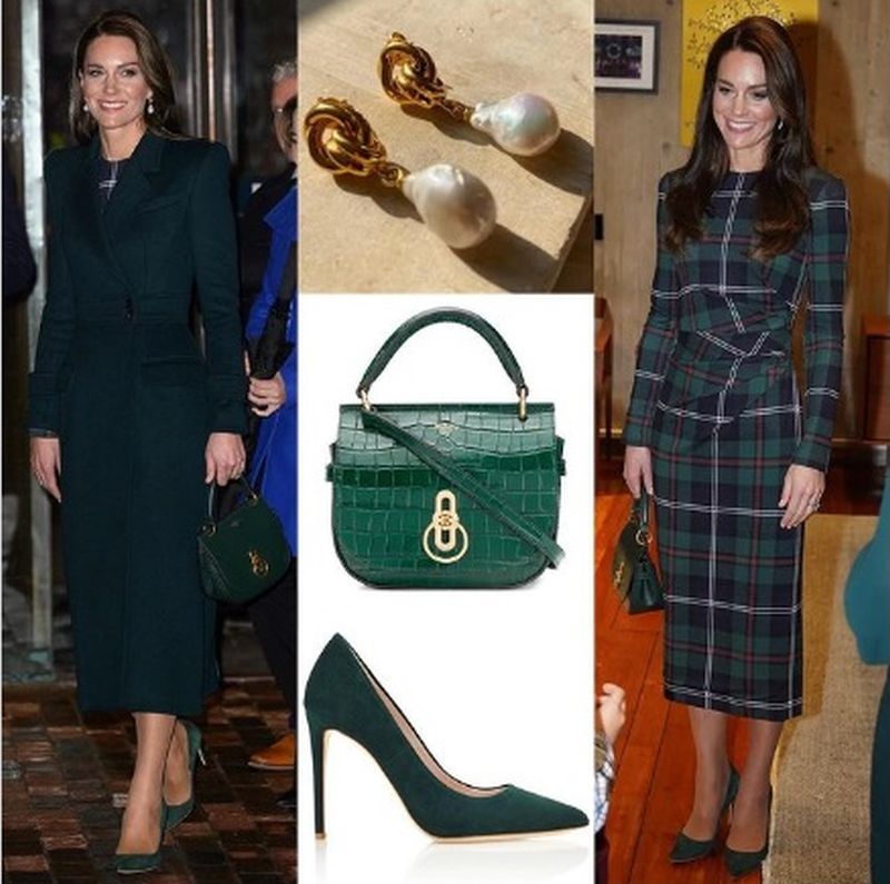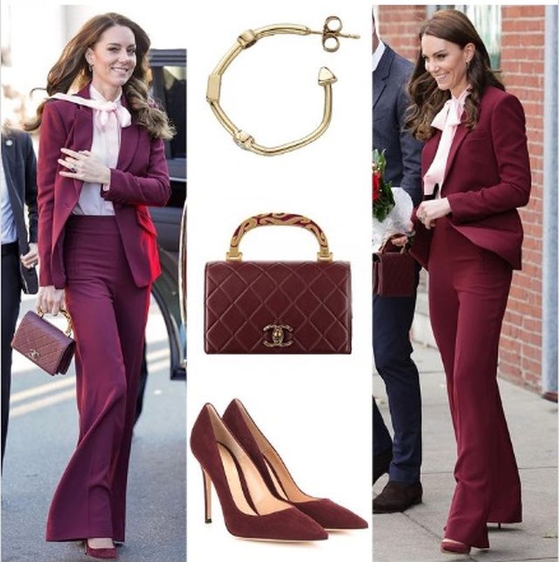 Катрин приключи визията с чифт велурени обувки на Gianvito Rossi за 675 $, обеци с обръч Daniella Draper за 3008 $ и екстравагантна чанта на Chanel, която към този момент не се продава, само че в началото беше на цена от 4664 $.