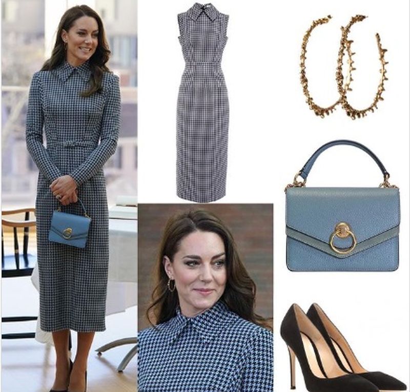 Херцогинята на Кеймбридж и Корнуол носеше обувки Gianvito Rossi за 775 $ и носеше синя кожена чанта Mulberry, която сега се препродава онлайн за 1100 $.