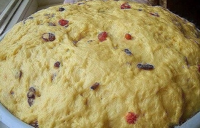 първо, в подобаващ съд разбивате 4 яйца, прибавяте нарязано на късчета 200 г краве масло, заливате с топло прясно мляко и оставяте разбърканата грижливо примес да престои през нощта (за 8 – 12 часа) на топло място;