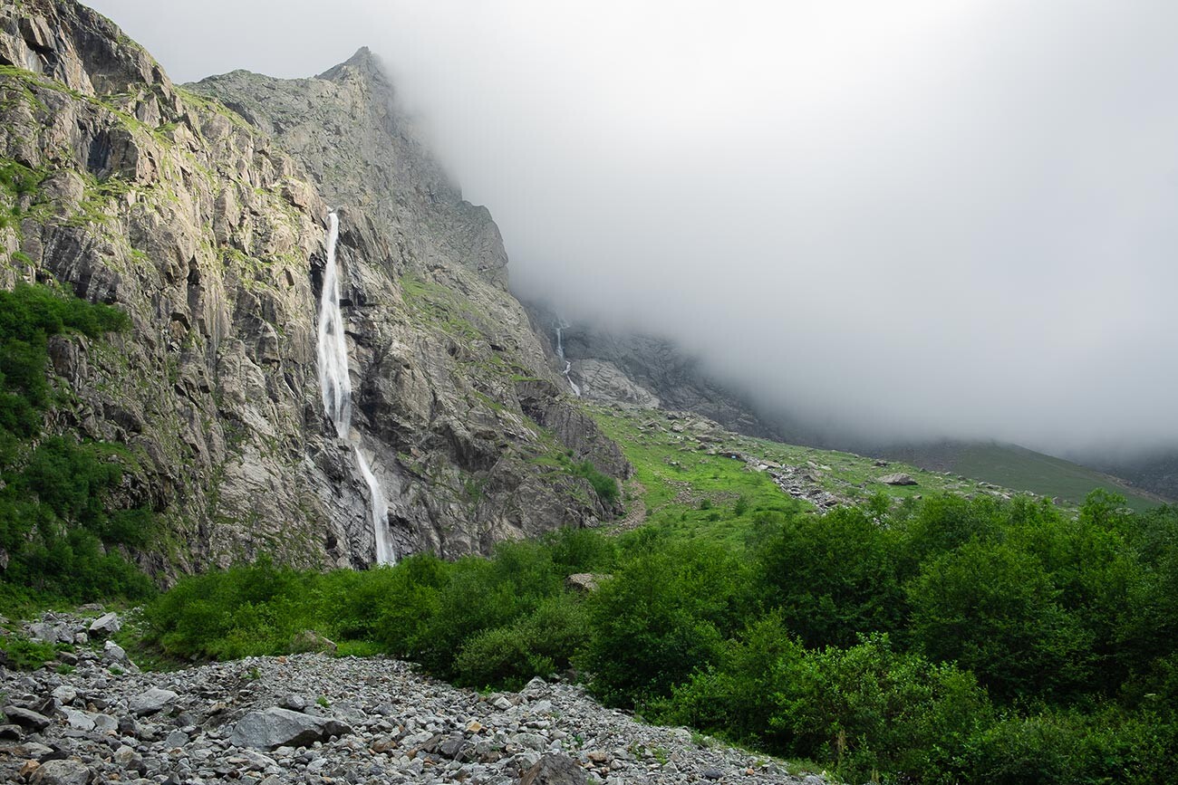 Този водопад в планините на република Северна Осетия е прочут и като „ Голям Зейгелански “. В превод от осетински името му значи „ място, където пада лавина “. Височината на водопада, по последни измервания от 2016 година, е 648 м и се счита за най-високия водопад в Европа (и втори по височина в Русия). Водата пада най-мощно през юли и август, когато се топи планинският хладилник, който зарежда водопада. През зимата водата замръзва и разклонените ледени ручеи образуват живописна мрежа по планинските проломи.