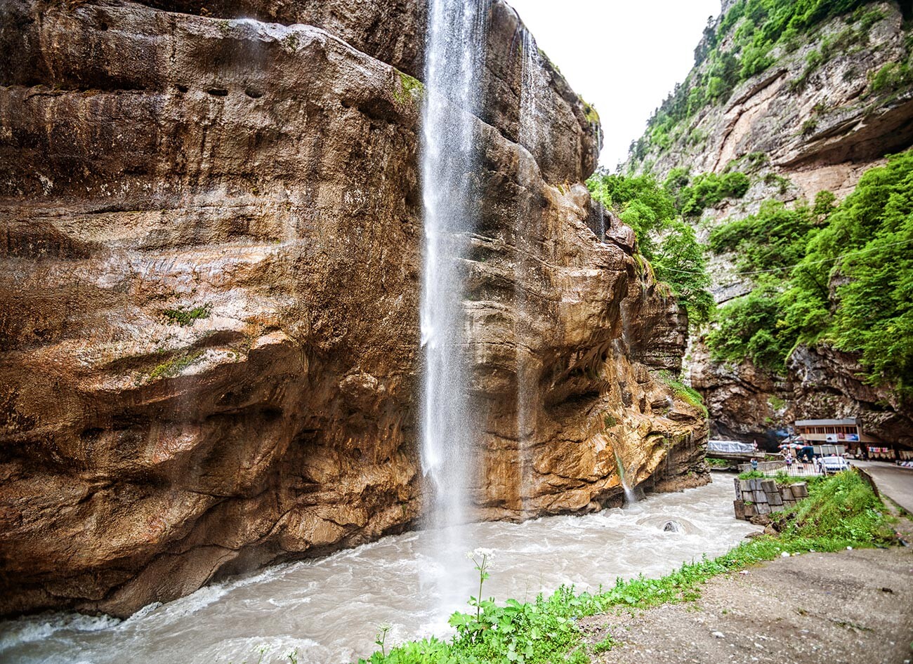 В Чегемското дефиле в Кавказ в р. Чегем се вливат цели три водопада с височина от 25 до 60 метра. Водопадите са една от визитните картички на република Кабардино-Балкария. Недалеч от това естествено знамение се намират обитаеми места и път, а наоколо има даже хотел, по тази причина туристите тук постоянно са доста.