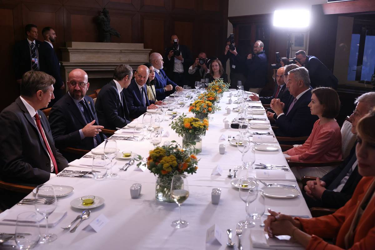 Потвърждавайки нашия мощен ангажимент към основополагащите правила на Хартата на ПСЮИЕ, Хартата на Организацията на обединените народи и съответните текстове на Европейски Съюз, ОССЕ и Съвета на Европа; Останалата част можете да прочетете ТУК: Всички публични фотоси и видеа са качени на уеб страницата на Европейската комисия: Официално видео на участниците Видео от вечерята Видеото демонстрира, че домакинът Кириакос Мицотакис персонално посреща и приветства всеки от представителите на другите страни, участници в срещата. България се показва от външния министър Теодора Ганчовска. Премиерът липсва и на фотосите от формалната вечеря, въпреки че от Министерски съвет настояват, че е просрочен за срещата заради задължения, само че е участвал на вечерята. На фотографията Теодора Генчовска липсва, а има два празни стола. Ако въпреки всичко Петков е участвал на вечерята, той е дошъл със съществено забавяне.