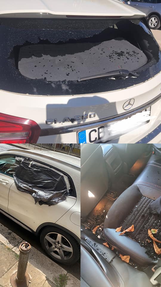 Ето го и резултата от дейностите на мъжа - колата е с потрошени стъкла.
