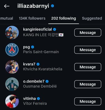 Въпреки че всички чакат спортът да не се смесва с политиката, в обществените мрежи на украинския национал е ясно, че той следва съвсем всички играчи на ПСЖ в Инстаграм, като се изключи Сафонов.